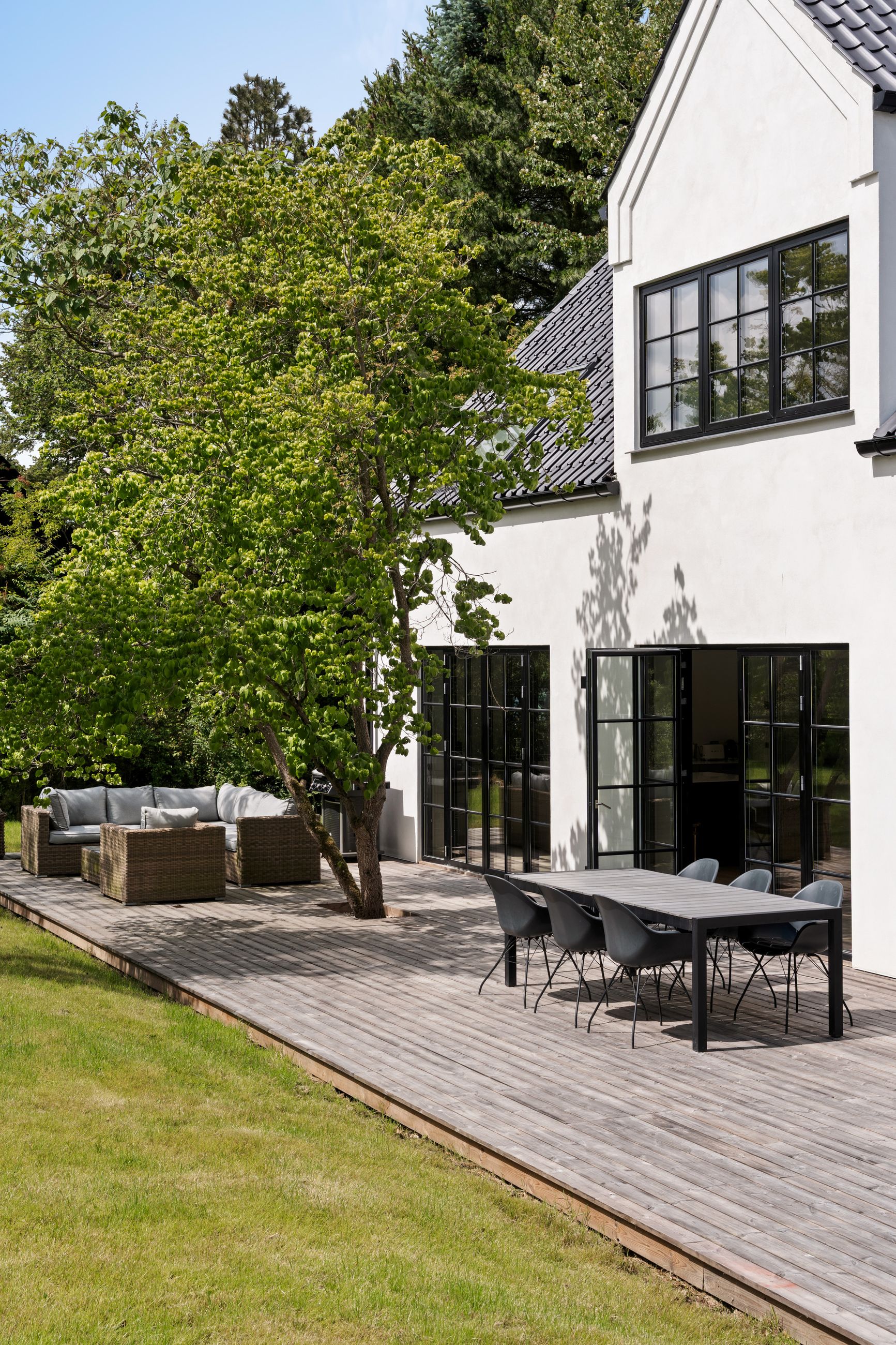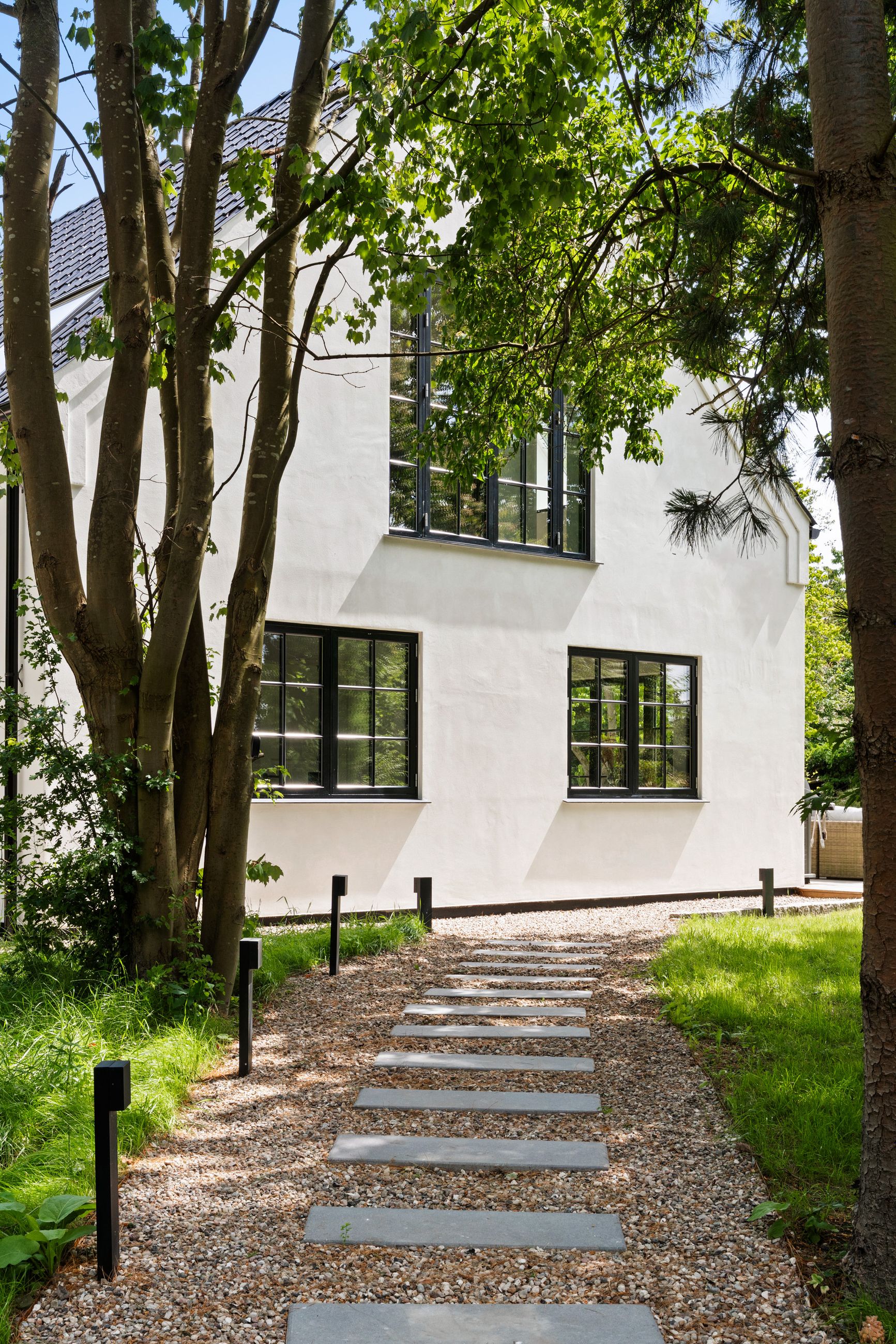 Her på en 1.537 m2 stor grund er der, med skånsom respekt for de unikke gamle træer, opført et hus tegnet af arkitekt Oliver Grundahl (OGArchitecture) med vægt på langtidsholdbare løsninger samt et kræsent materialevalg fra de kendte mærkers øverste hylder.