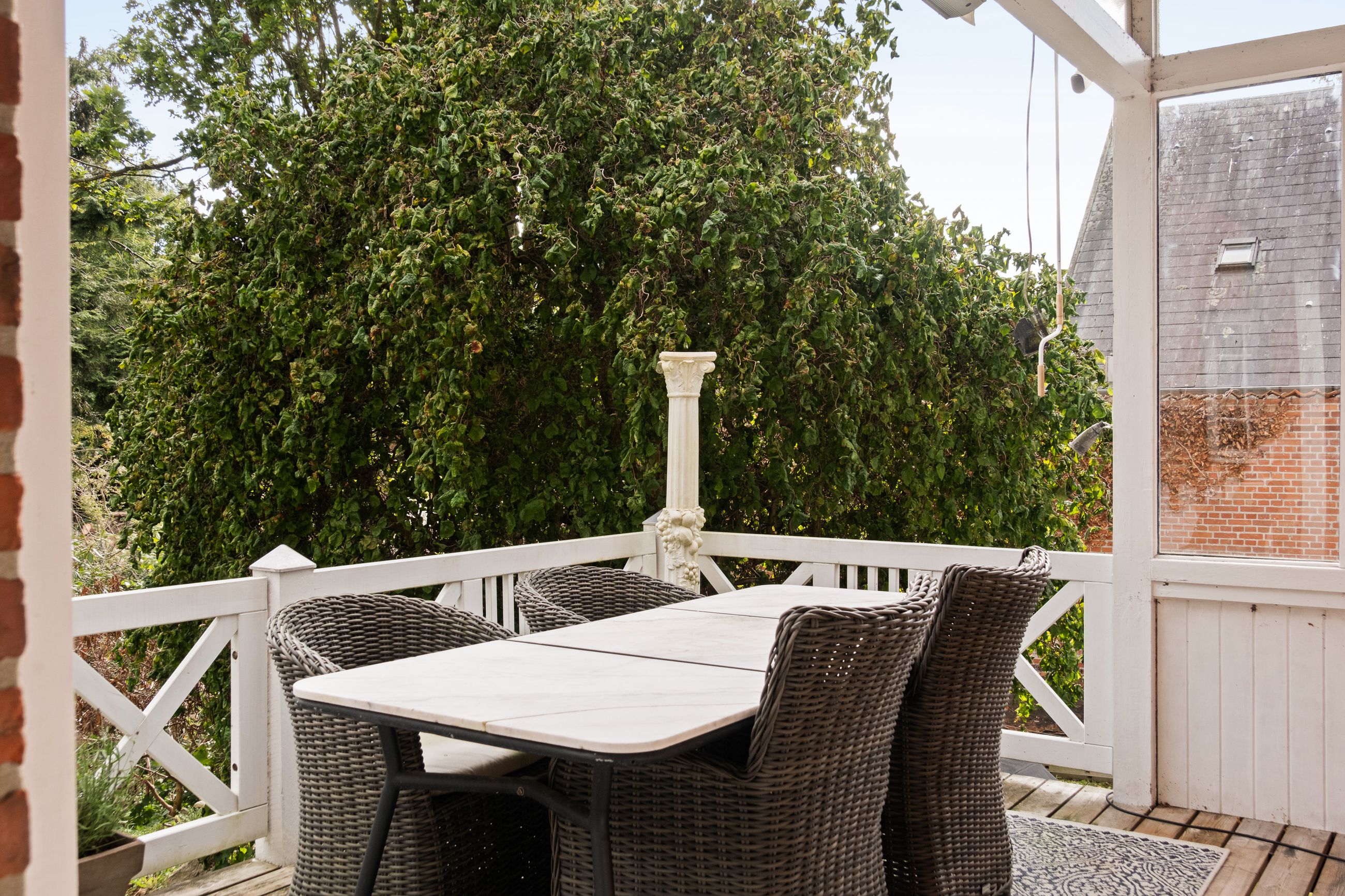 Bag den smukke facade med buede vinduer, tegltag og elegant indrammet hoveddør gemmer sig en bolig, hvor hver detalje bærer på historie, håndværk og varme. Taget blev udskiftet i 2012, og samtidig blev alle fuger mellem murstenene fornyet – et arbejde, der sikrer huset mange vedligeholdelsesfri år fremover. Det er et hjem, hvor du næsten hører trægulvene fortælle om generationer, der har levet, leget og grinet her – og hvor nutiden har givet det hele et blidt og tidløst løft.