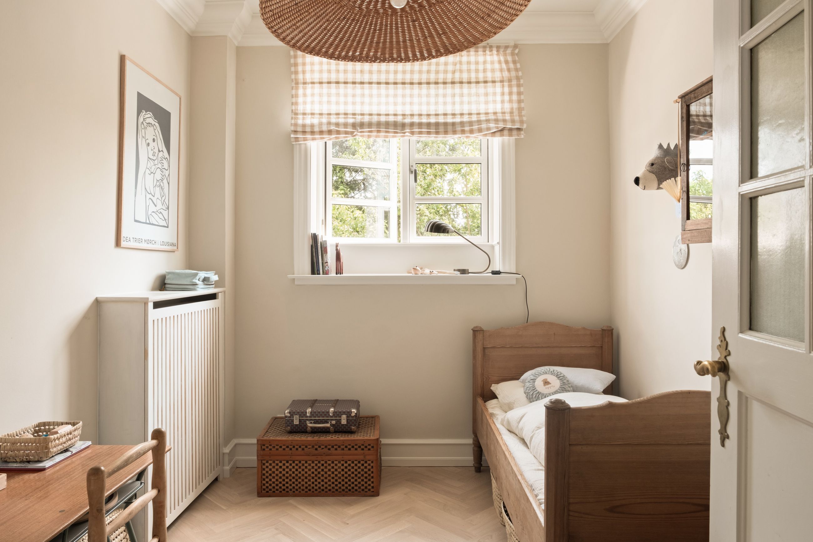 Lejligheden ligger på første sal i en solid murstensejendom fra 1932 og har en usædvanligt god planløsning. Her er ingen spildplads – til gengæld er der højt til loftet, flotte originale detaljer og en sjælden rummelighed. Alt er renoveret med en rolig hånd. Resultatet er en bolig, hvor det klassiske udtryk bevares, men komforten er opdateret.